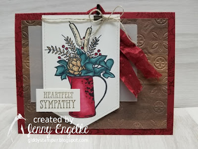 Hand Stamped Sentiments color challenge #321 featuring Pretty Peacock, Cherry Cobbler, and Soft Suede. I needed a sympathy card for a good friend whose mother just passed, so I took advantage of the rich, pretty colors and created a nice bouquet. I also used the layout of the bottom left card on page 101 for